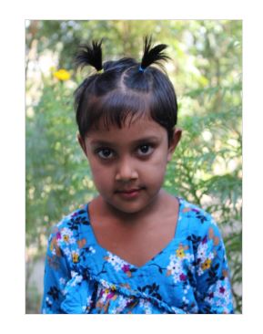 Dobrý den! Jmenuji se Khadija Akter a je mi sedm let. Žiji v Barishalu se svými rodiči. Tatínek pracuje jako rybář a nádeník, což není snadné, protože v naší vesnici je po většinu roku horko a vlhko, s vydatnými monzunovými dešti a někdy i cyklóny. Sice už i tady docela dobře funguje systém včasného varování, takže nás to většinou nepřekvapí, ale život je kvůli tomu obtížný. Chodím do vesnické školy Bakal, jsem v první třídě. Ráda poslouchám básně, zpívám ve školních soutěžích a mým oblíbeným předmětem je bengálština, protože mám ráda poezii. O přestávkách si často kreslím a s holkama skáčeme přes švihadlo. Moje oblíbená barva je červená a miluji psy. Večer ráda poslouchám příběhy starších lidí. Až vyrostu, chtěla bych se stát zdravotní sestrou.
